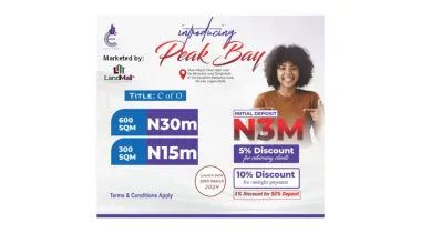 We are delighted to announce the official introduction of our latest addition to our Estates – *PEAK BAY*! Nestled in a prime location, Okun- Mopo/Okun-Ajah via Monastery Road Sangotedo or via Abraham Adesanya, Eti-Osa With a flexible payment plan and an amazing pre-launch price, this estate is a good buy for any real estate investor.