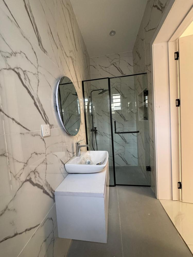 Anteroom • All rooms ensuite • Dining area • Chandelier • Inbuilt speaker • Table top cooker • Heat extractor • Marble island • Microwave • Oven • Kitchen cabinets • Spotlights • Family lounge • Wardrobe • Heat extractor • Water heater • POP ceiling • Rooftop terrace • Walk-in closet • Bath tub • Walk-in shower • Shower cubicle • Guest toilet • BQ • Security house • Ample car parking space